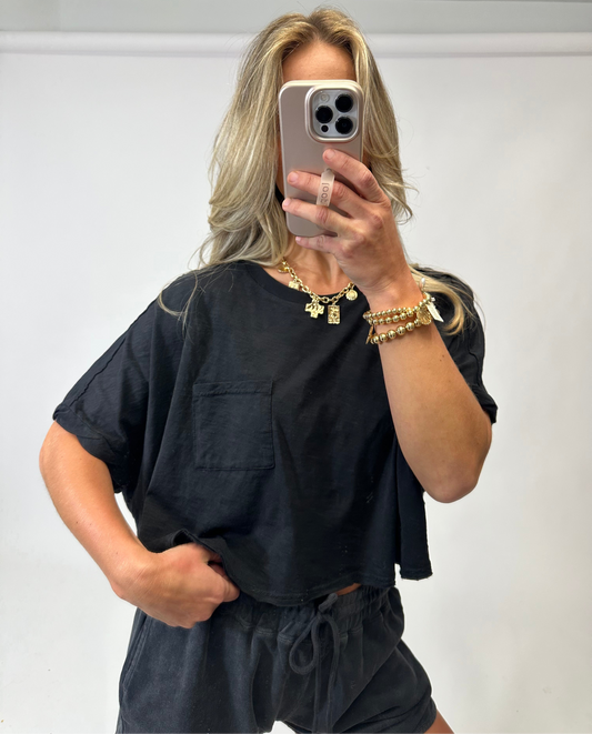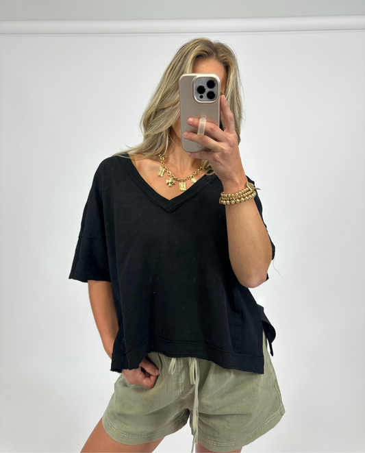 Edge V-Neck Tee - Black | August Moon Boutique