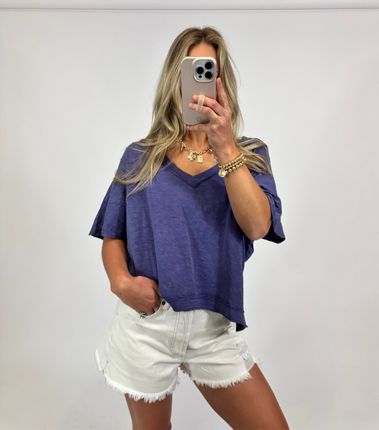 Edge V-Neck Tee - Dusty Indigo | August Moon Boutique
