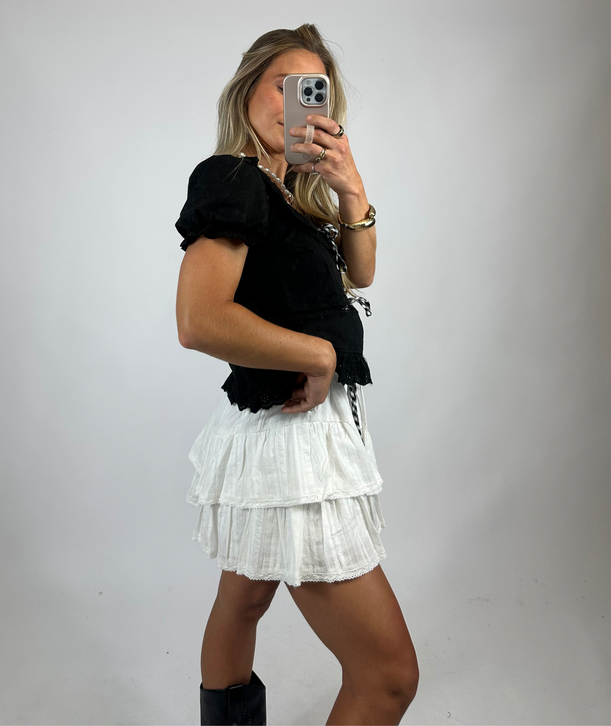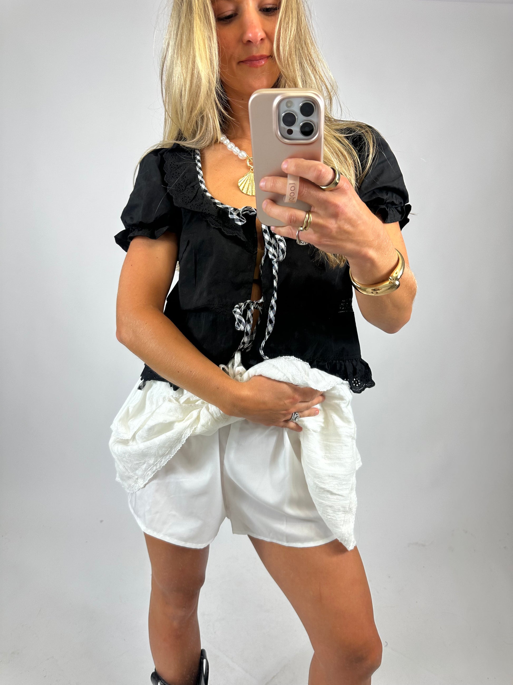 Effortlessly feminine and full of charm, the Embroidered Ruffle Skort combines the best of a skirt and shorts for a versatile, comfortable look. Crafted in crisp white, this piece features delicate embroidery and a flattering V-shaped ruffle tiered design that adds texture and movement. With built-in shorts underneath for extra coverage and freedom of movement, it’s perfect for everything from picnics to a day out with friends.